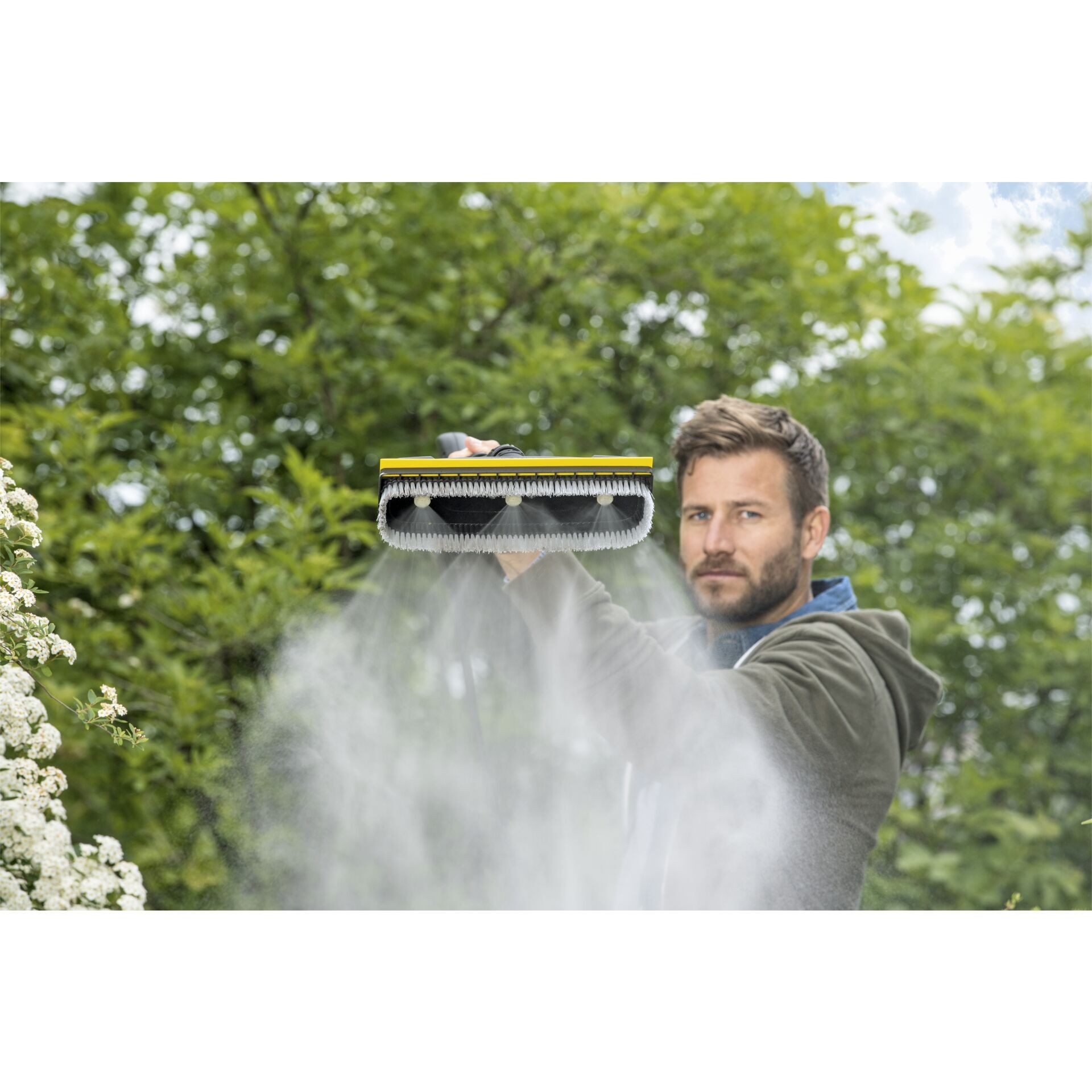 PS 30 snažna četka za ribanje osigurava briljantne rezultate čišćenja na širokom rasponu površina. To osiguravaju 3 visokotlačne mlaznice koje otpuštaju čak i tvrdokornu prljavštinu. Zbog toga je PS 30 idealan pomoćnik za pouzdano čišćenje malih do srednje velikih površina, poput stepenica i rubova. Za dosezanje teško dostupnih mjesta, glava četke može se okretati za 360°. Sve glatke površine mogu se obrisati nakon čišćenja integriranom usnom za prljavštinu. Ovo brzo uklanja višak prljave vode i površine se mogu odmah ponovno koristiti. Ova kombinacija mlaza visokog tlaka i ručnog pritiska četke stavlja svaku konvencionalnu četku za ribanje u kut svojim performansama čišćenja i može se kombinirati sa svim Kärcher visokotlačnim čistačima klase K 2 do K 7.