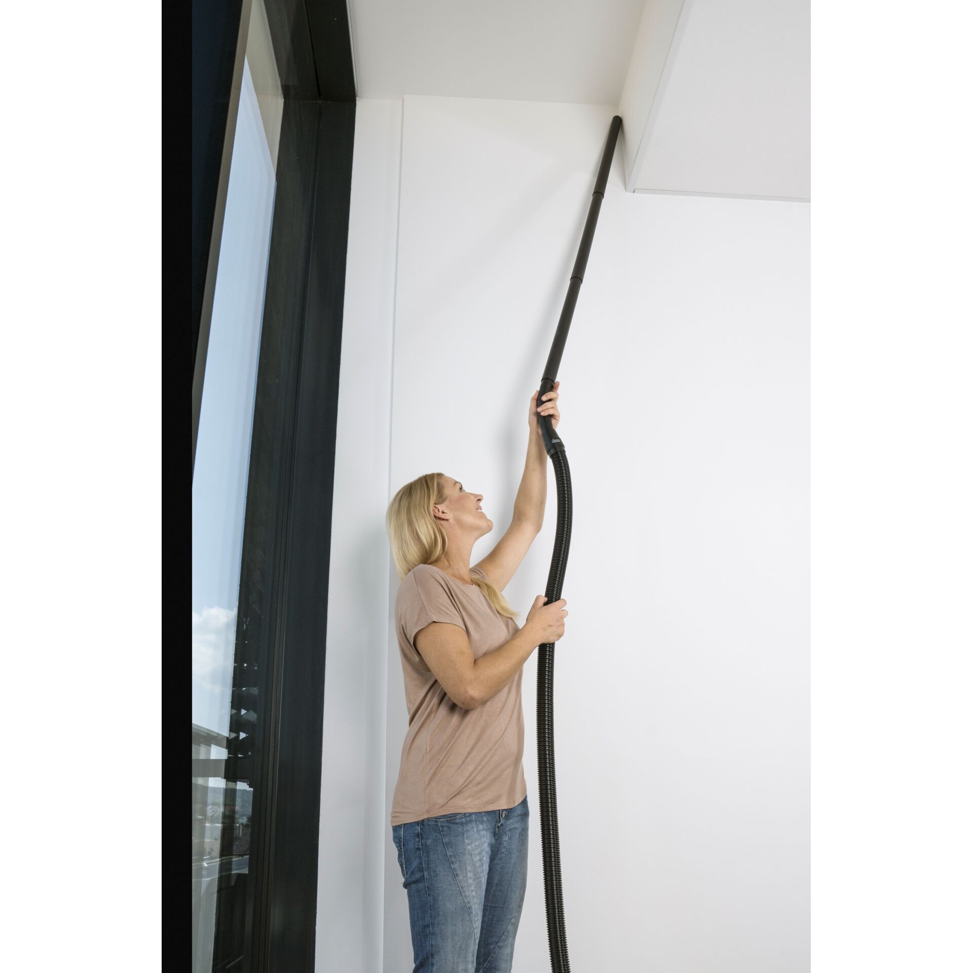 Praktična produžna usisna cijev za veći radijus djelovanja. Produžetak usisne cijevi posebno se preporučuje za korištenje na teško dostupnim mjestima poput visokih stropova.
