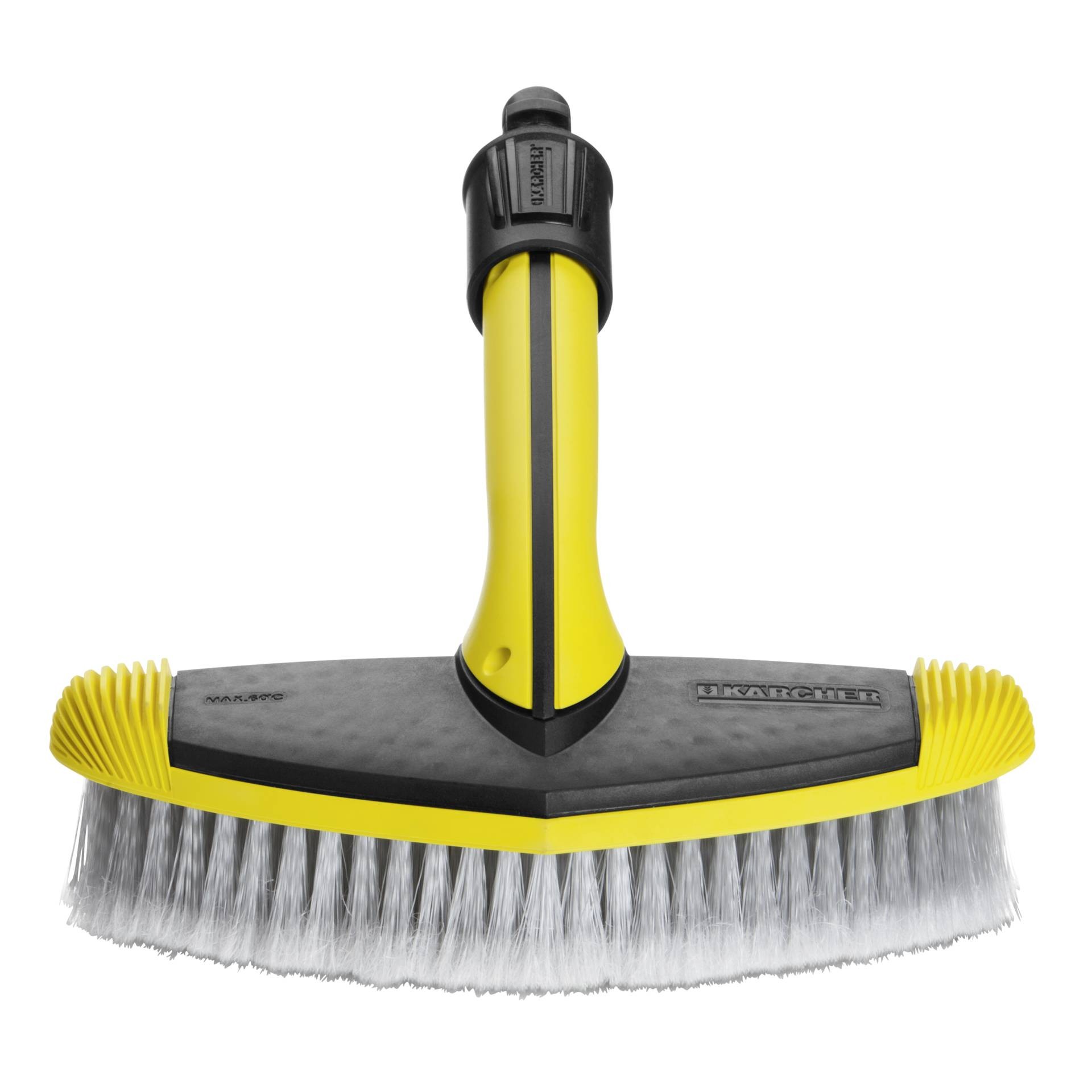 Unatoč izvrsnom učinku čišćenja, mekane čekinje štite površinu, a obodni zaštitni prsten dodatno štiti predmet čišćenja od neprivlačnih ogrebotina, Isporučena spojna matica jamči čvrst hvat u visokotlačnom pištolju, gumena podloga uklanja posebno tvrdokornu prljavštinu poput muha, a ergonomski oblikovana ručka osigurava jednostavno i udobno rukovanje, Ukratko: Idealno rješenje za čišćenje velikih površina oko kuće i vrta,