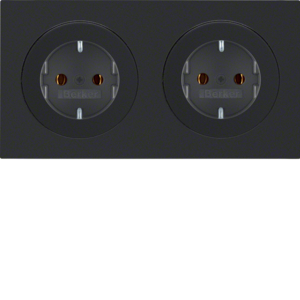 Utičnica, ŠUKO, 2-struka, kombinacija sa okvirom, R.3, crna sjajna