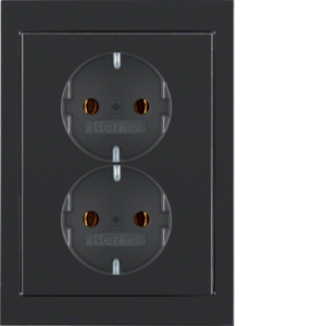 Utičnica, ŠUKO, dupla sa okvirom, R.1/R.3, crna sjajna
