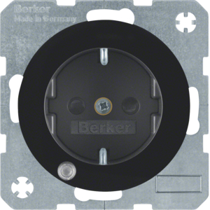 Utičnica, ŠUKO, sa kontrolnim LED, zaštitomza djecu, R.1/R.3, crna sjajna