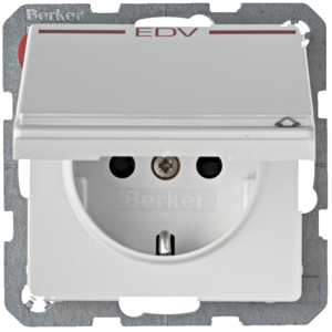Utičnica, ŠUKO, sa poklopcem, crveni natpis EDV, Q.1/Q.3, p.bijela pliš