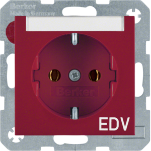 Utičnica, ŠUKO, sa poljem za natpis, natpis EDV, S.1, crvena sjajna