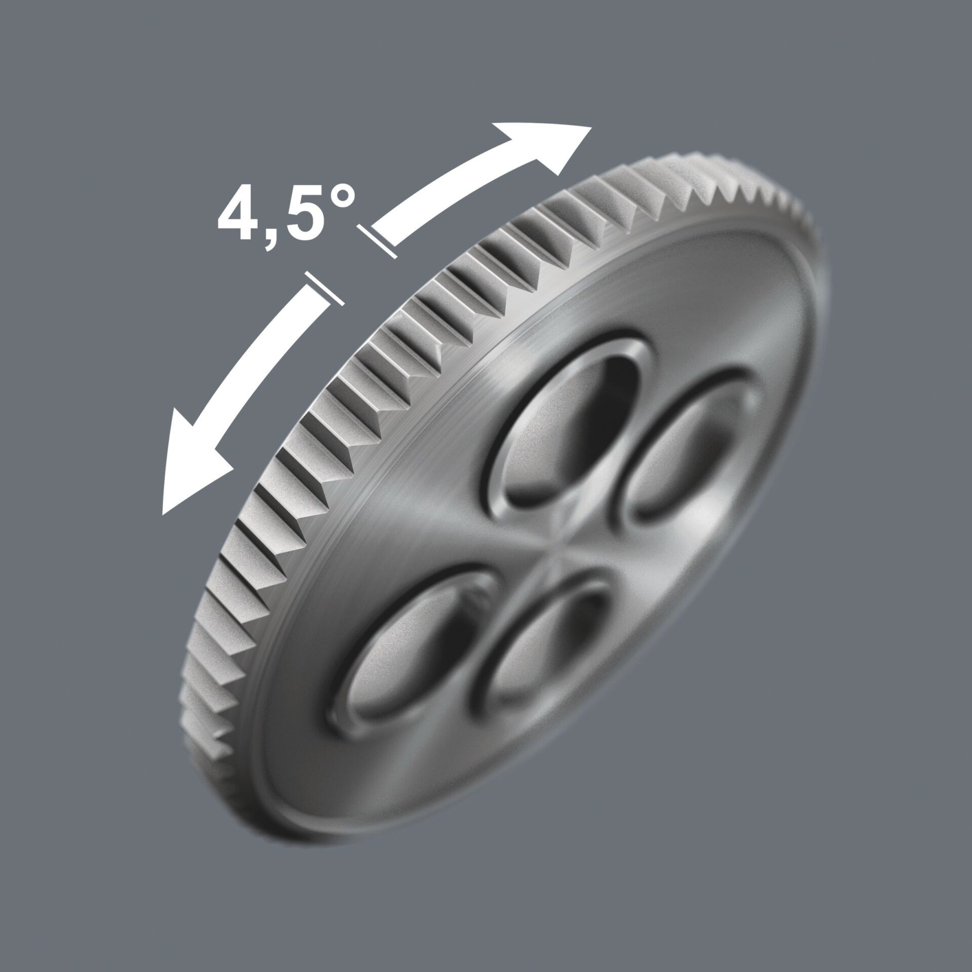 Integrirana čegrtaljka s finim nazubljenjem (80 kut zuba/povratka 4,5°) olakšava i ubrzava uvrtanje vijaka bez potrebe za premještanjem alata, mehanizam čegrtaljke u potpunosti ugrađen u dršku osigurava vrlo praktičan i udoban rad, s polugom za preokretanje za udobnu promjenu smjera u smjeru kazaljke na satu/suprotno od kazaljke na satu pri radu jednom rukom, ergonomski oblik drške dobro ispunjava dlan, prsti sigurno leže u meko zaobljenim udubljenim hvatištima, cijela ruka dolazi u kontakt s drškom, izbjegava se gubitak trenja između ruke i drške, držač bitova za bitove s vanjskim šesterokutnim pogonom od 1/4", s Rapidaptor tehnologijom za munjevito brzu izmjenu bitova,