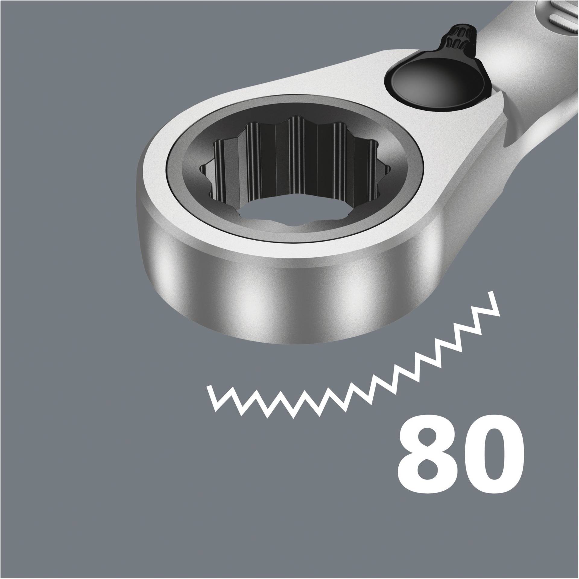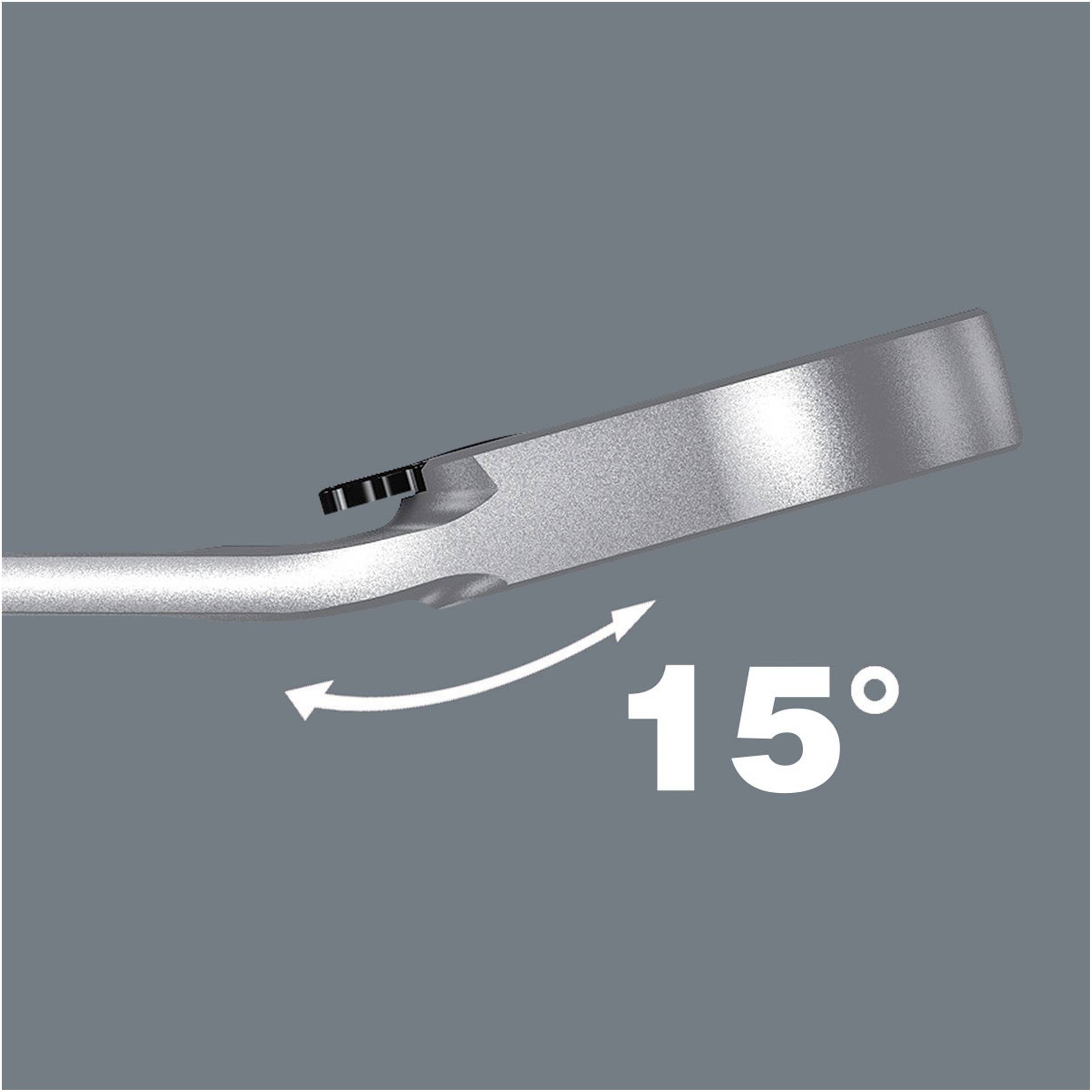 Dvostruka šesterokutna geometrija pruža vrlo pozitivno spajanje s maticama ili vijcima i ponovno osigurava manji rizik od klizanja, Niski kut povrata od samo 30° na kraju čeljusti izbjegava dugotrajno okretanje ključa prilikom pričvršćivanja, Reverzibilni mehanizam čegrtaljke na kraju oka s finim nazubljenjem (80 zuba) osigurava veliku fleksibilnost čak i u skučenim prostorima, Čujno precizan mehanizam čegrtaljke, Osim toga, robusni dvodijelni element za zaključavanje pruža iznimnu stabilnost, Dolazi s kutnim krajem čegrtaljke od 15° za siguran rad čak i pri velikom okretnom momentu, Posebna kovana geometrija omogućuje visoki prijenos okretnog momenta i visoku krutost na savijanje,
