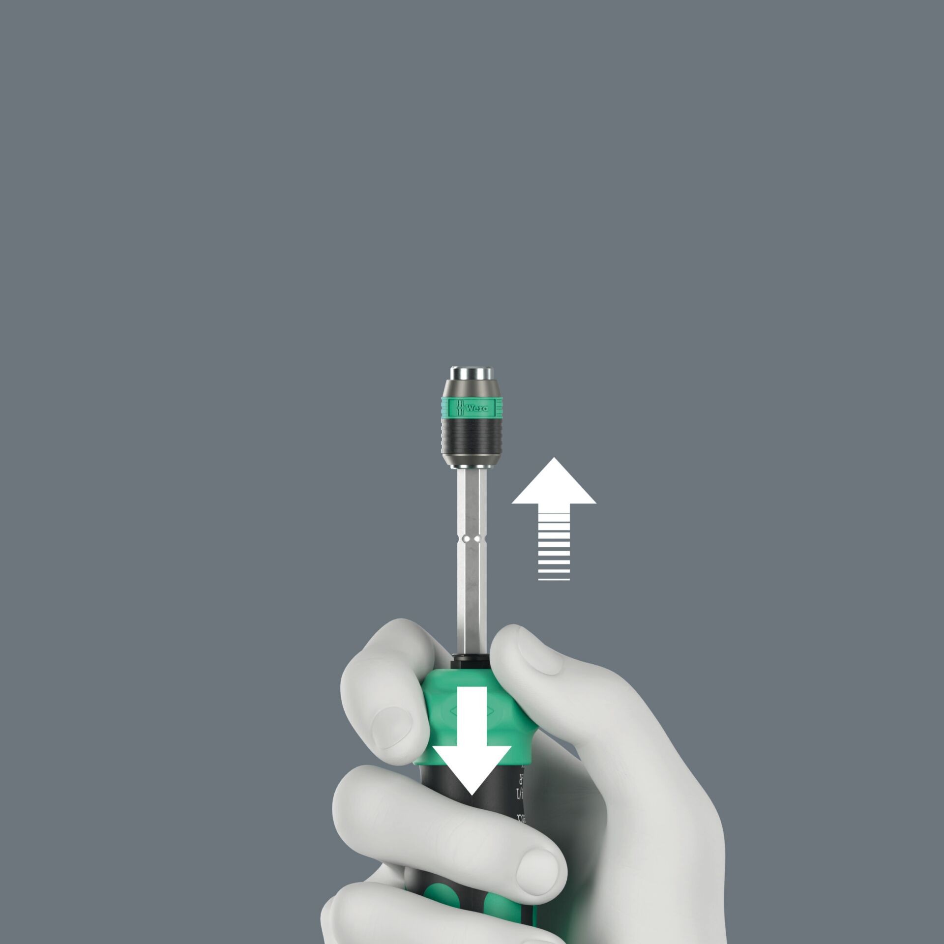 Wera Kraftform Kompakt 26 RA-R je svestrani odvijač s integriranim mehanizmom čegrtaljke, koji omogućuje brz rad zahvaljujući finom prijenosu. Teleskopska oštrica može se spustiti u dršku ili skinuti s nje, što omogućuje korištenje alata i u uskim prostorima i kao držač bitova za strojeve. Osim toga, set ima integrirani spremnik bitova sa šest bitova od 25 mm i dolazi u praktičnoj torbici za pojas.